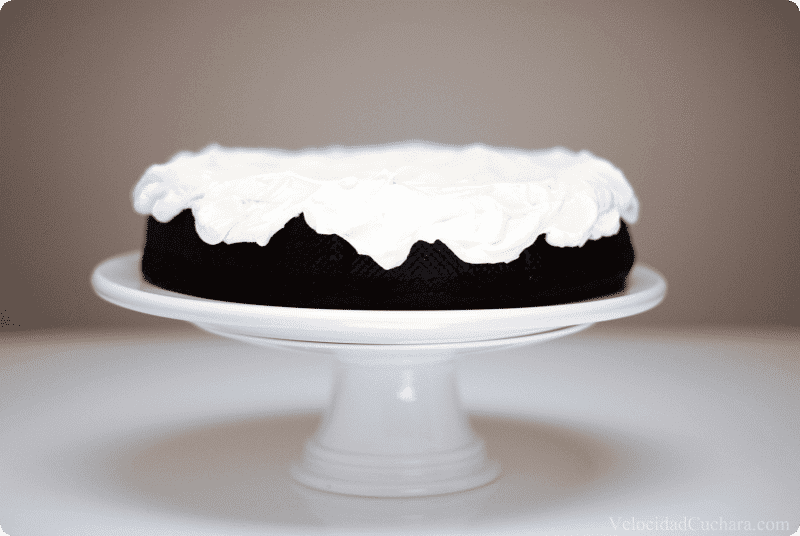 5.- Cubre la superficie del bizcocho con la mezcla (si quieres puedes dividir el bizcocho y untarlo también por dentro pero, salvo que te guste la repostería muy muy dulce no es nada aconsejable. Bueno, cuentión de gusto, claro).